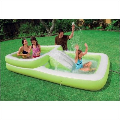 Intex 57487EP Features: -Play center. -Slide into summer fun with the Intex play center slide 'n fun pool. -Two separate pool compartments connected with an inflatable slide. -Built-in water sprayer connects to garden hose. Read more...