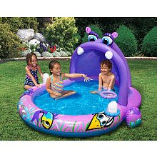 This Happy Hippo Splash Pool has everything you need to have a splashing good time this summer! Splash in the sun and then take a break under the shady hippo canopy. Play a fun game of ring toss as you try to stack the rings on the hippos tooth. It is sure to provide hours of summer fun!
